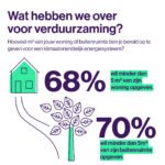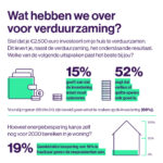 De meerderheid van de respondenten (76 %) verwacht dat de overheid de regie pakt om ervoor te zorgen dat de lusten en lasten van de energietransitie eerlijk worden verdeeld over de verschillende inkomensgroepen. Van de ondervraagden vindt 70% dat zij in eerste instantie zelf verantwoordelijk zijn voor het verminderen van het energiegebruik in huis. Iets meer dan de helft van alle respondenten (52%) is bereid 2.500 euro te besteden aan de verduurzaming van hun woning, zonder dat deze investering geld hoeft op te leveren. Als zeker is dat de investering winst oplevert, wil maar liefst 67% van alle respondenten dit bedrag uitgeven.