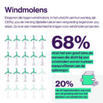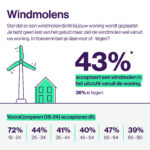 De energietransitie heeft in toenemende mate effect op de openbare ruimte, bijvoorbeeld doordat ruimte moet worden gemaakt voor windmolens. Gevraagd naar het plaatsen van windmolens in de wijk geeft 43% van de respondenten aan het geen probleem te vinden. Van de groep tegenstanders (36%) zegt 1 op de 5 van mening te veranderen als zij zelf kunnen meeprofiteren van de opbrengsten van de windmolen. Opvallend is dat onder jongeren (18-24 jaar) een grote meerderheid van 72% voor het plaatsen van een windmolen in de buurt van de eigen woning is.